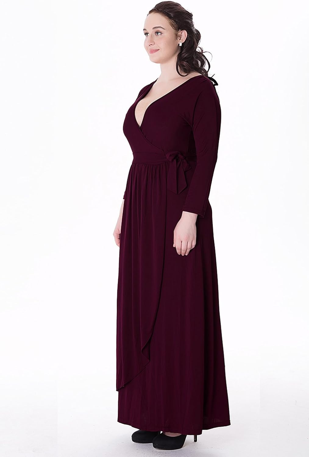 wine red long sleeve dress