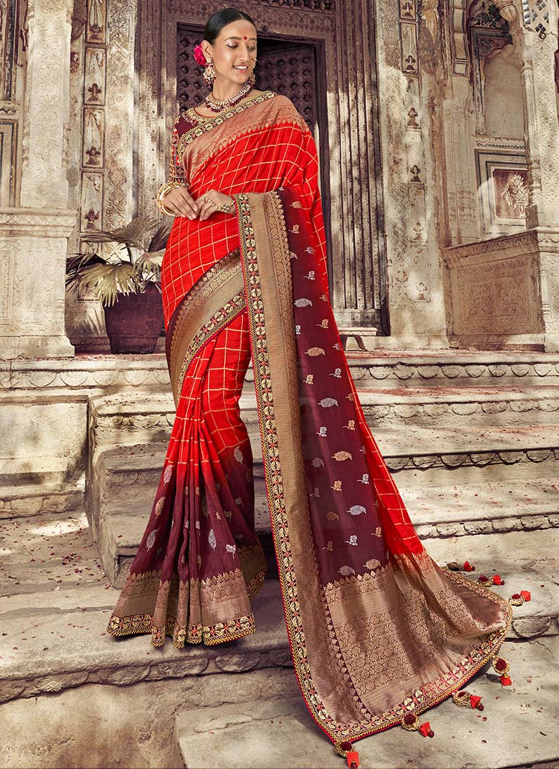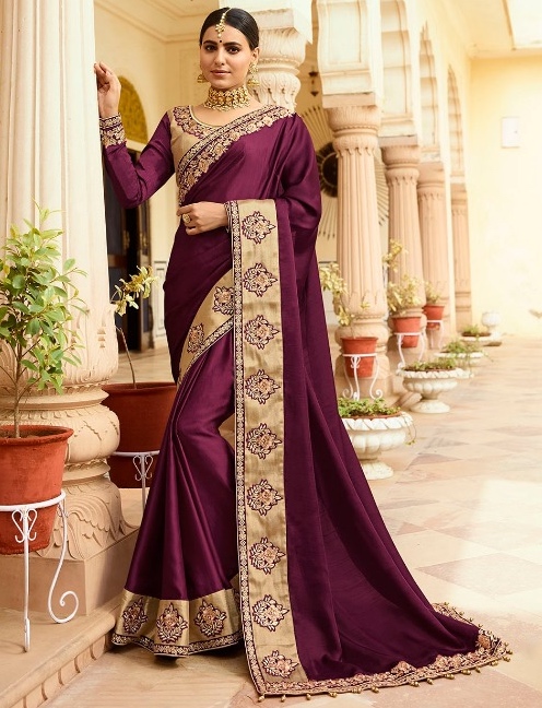 wine red wedding saree