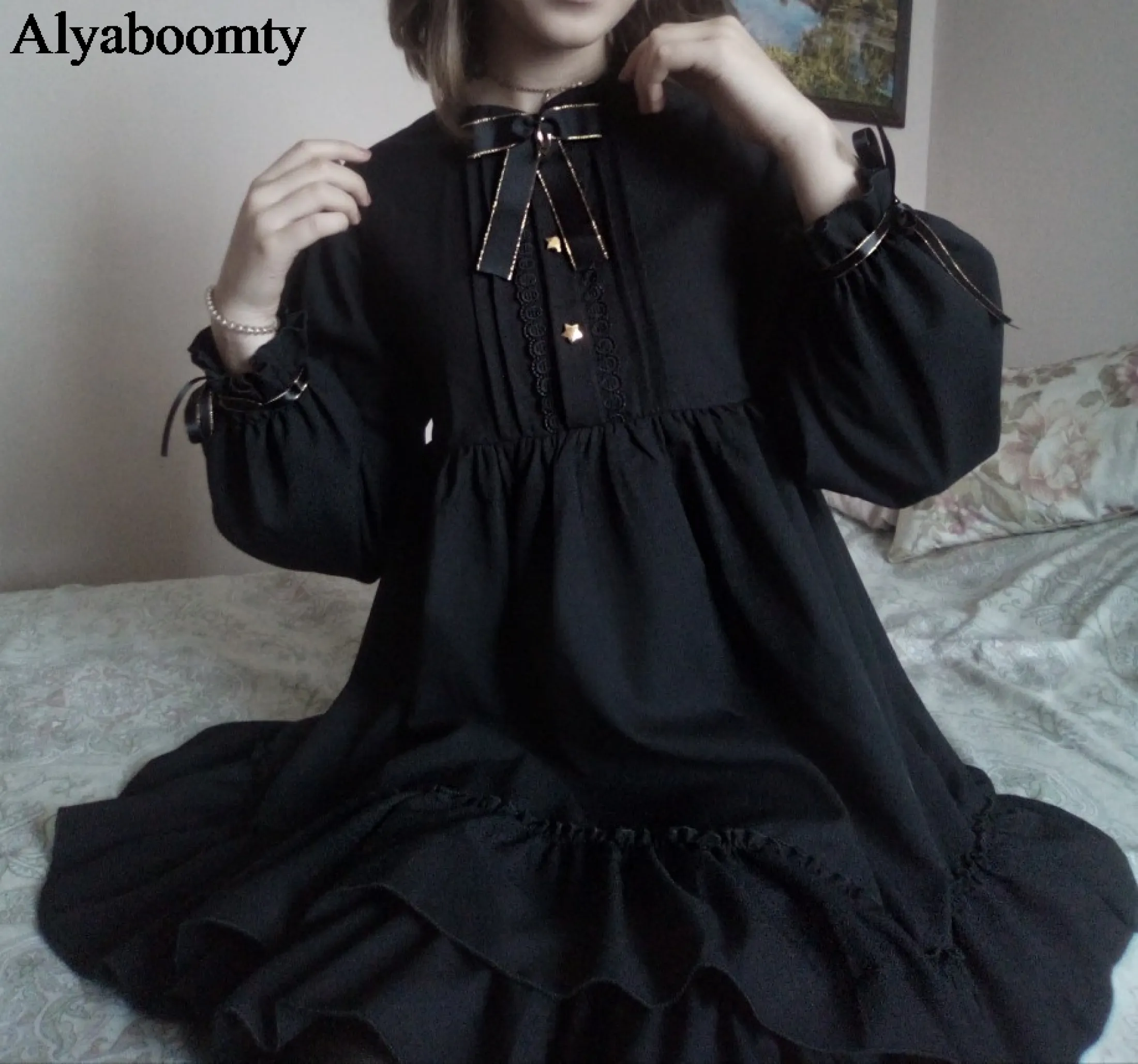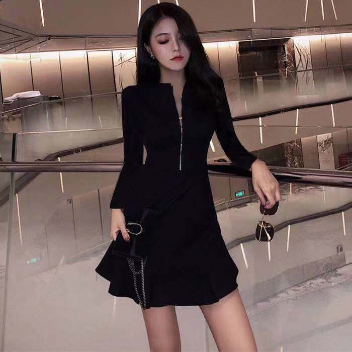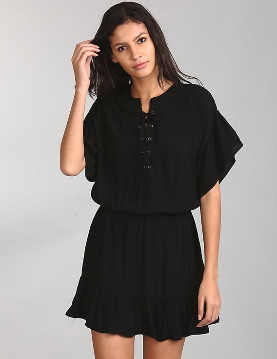 womens black ruffle dress