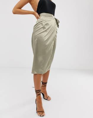 wrap satin skirt