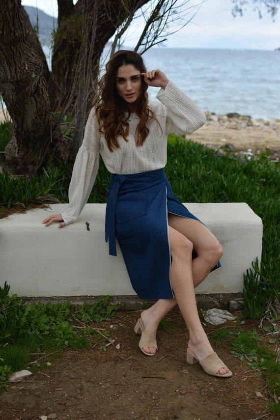 wrap skirt denim