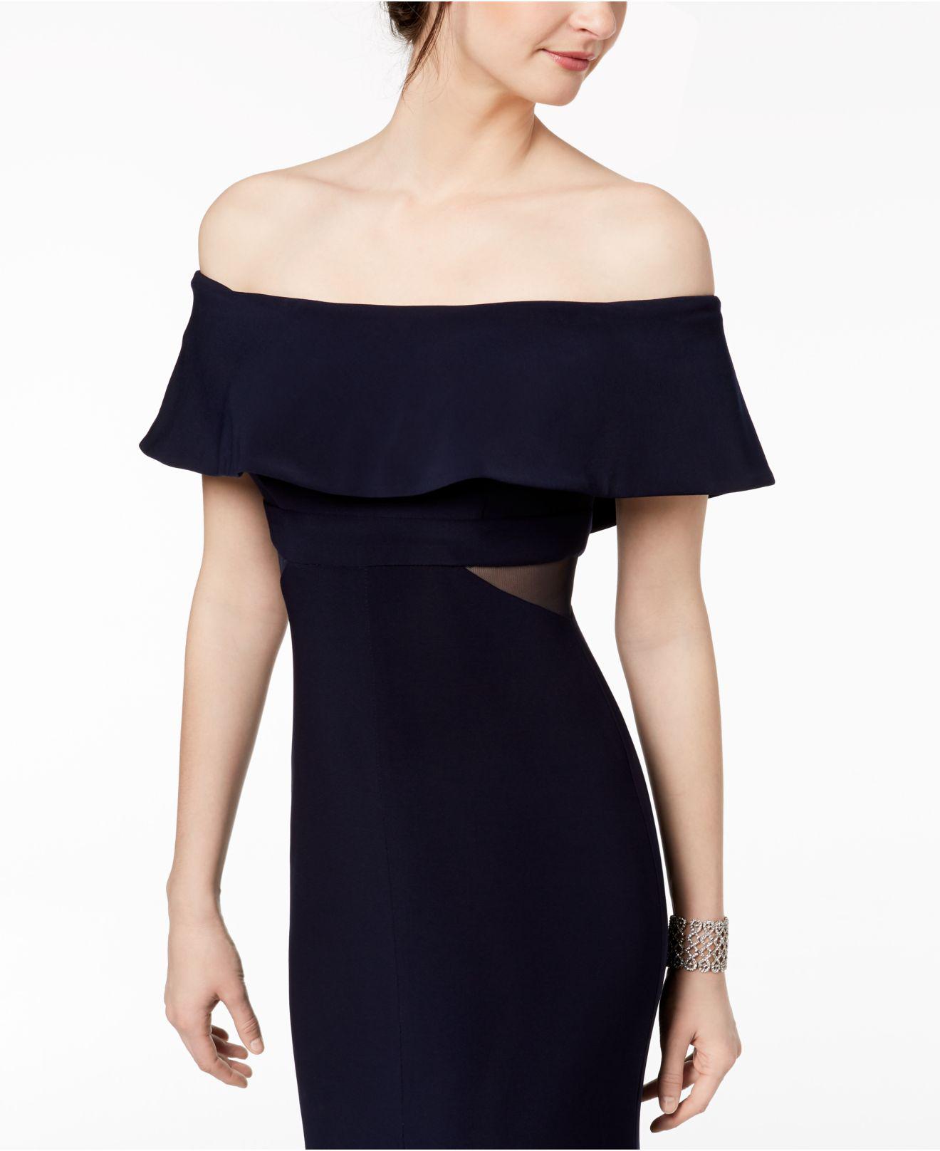 xscape ruffled strapless gown