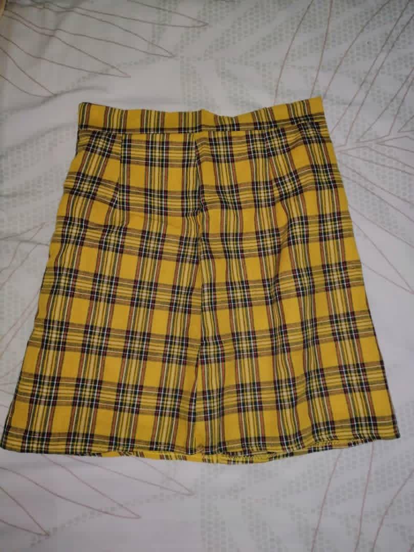 yellow checkered mini skirt