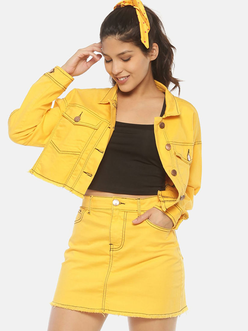 yellow denim skirt
