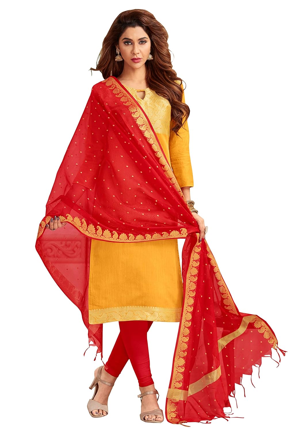 yellow with red dress