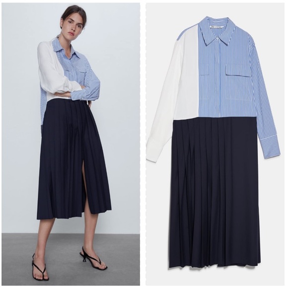 zara pleated patchwork dress