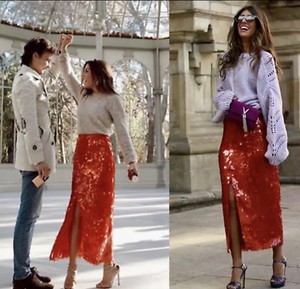 zara red skirt