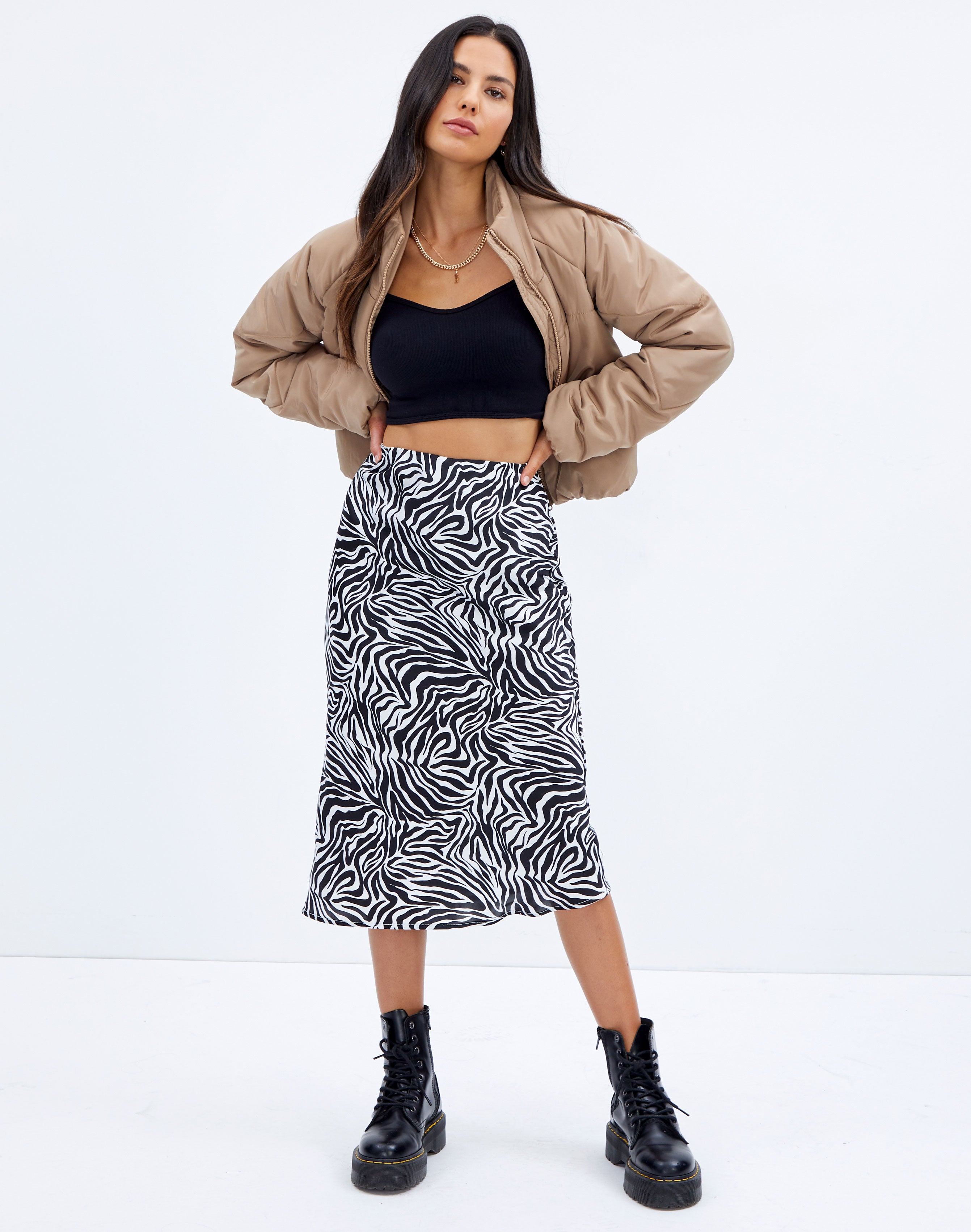 zebra midi skirt