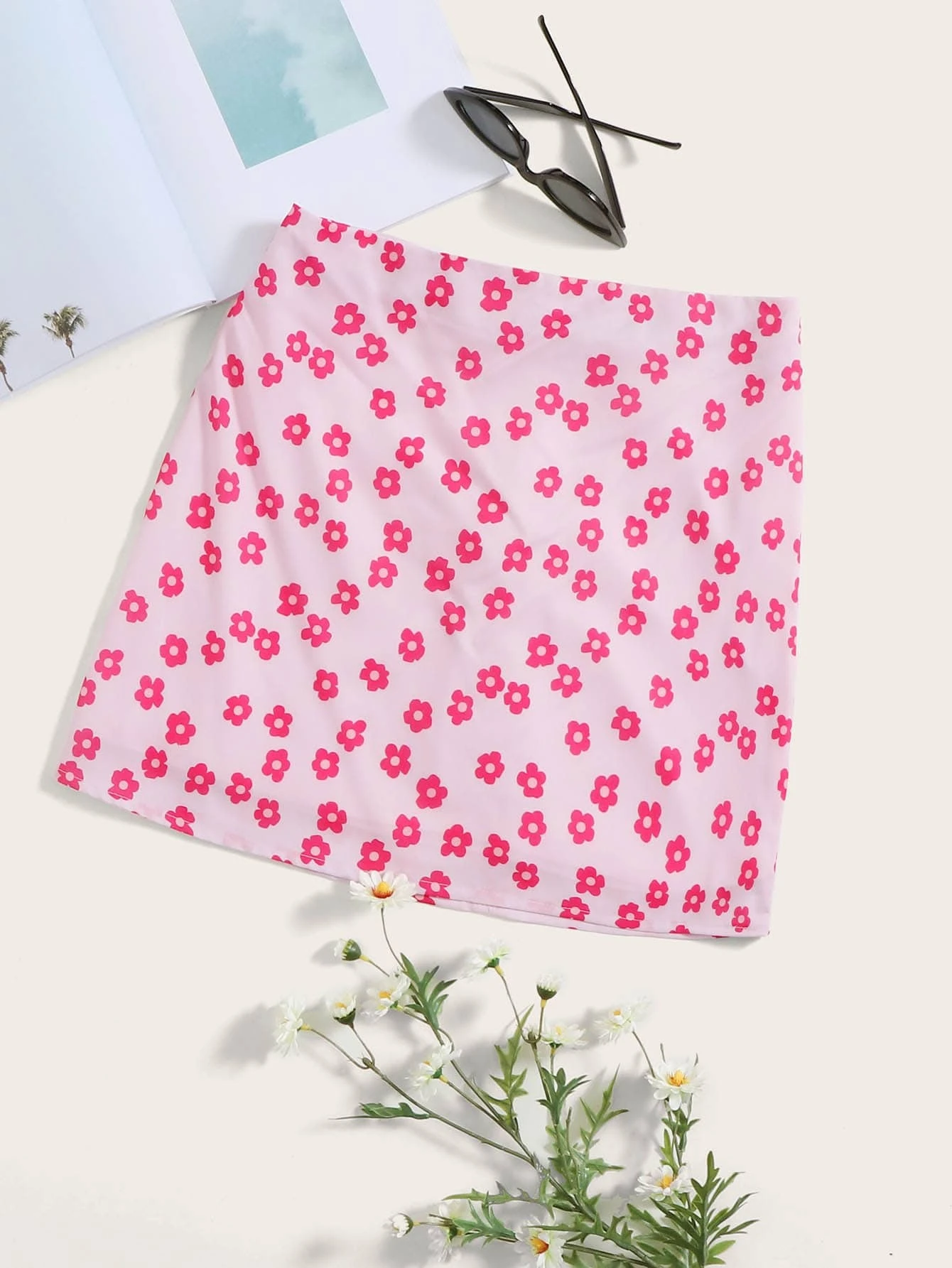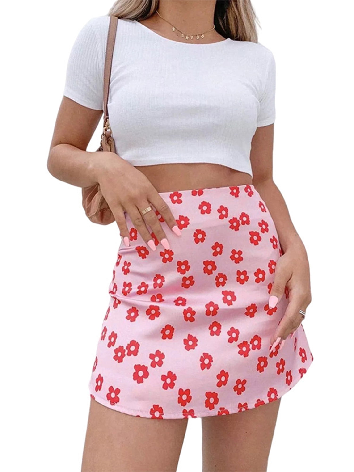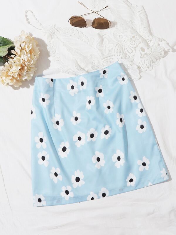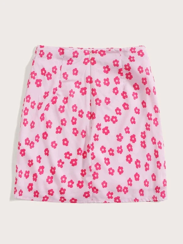 zip back floral print skirt