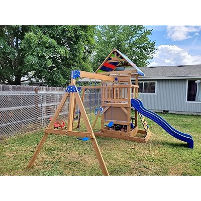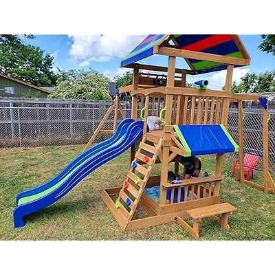 beachfront wooden swing set