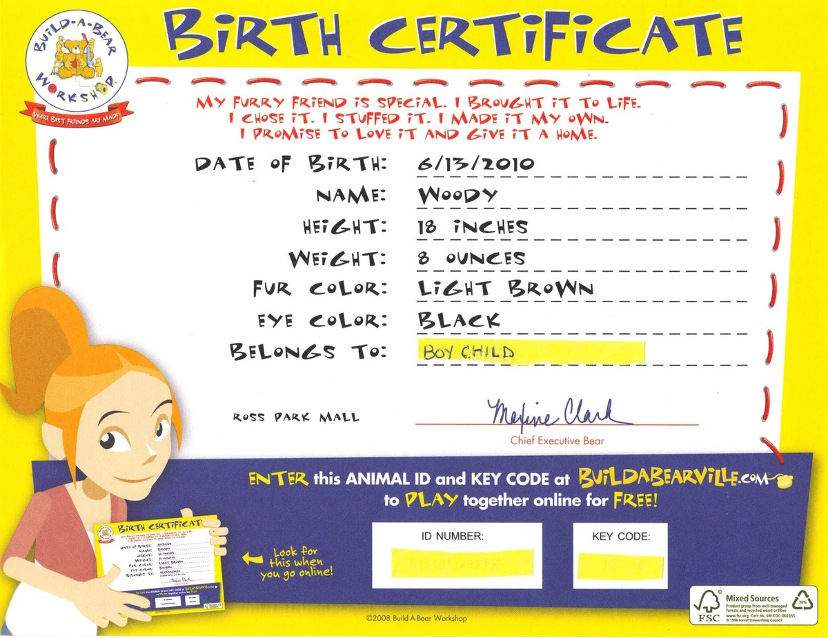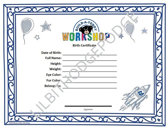 build a bear workshop birth certificate