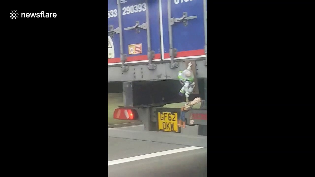 buzz lightyear and woody on back of truck