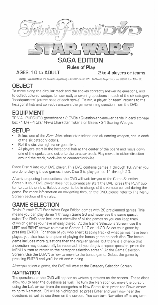 hasbro trivial pursuit star wars