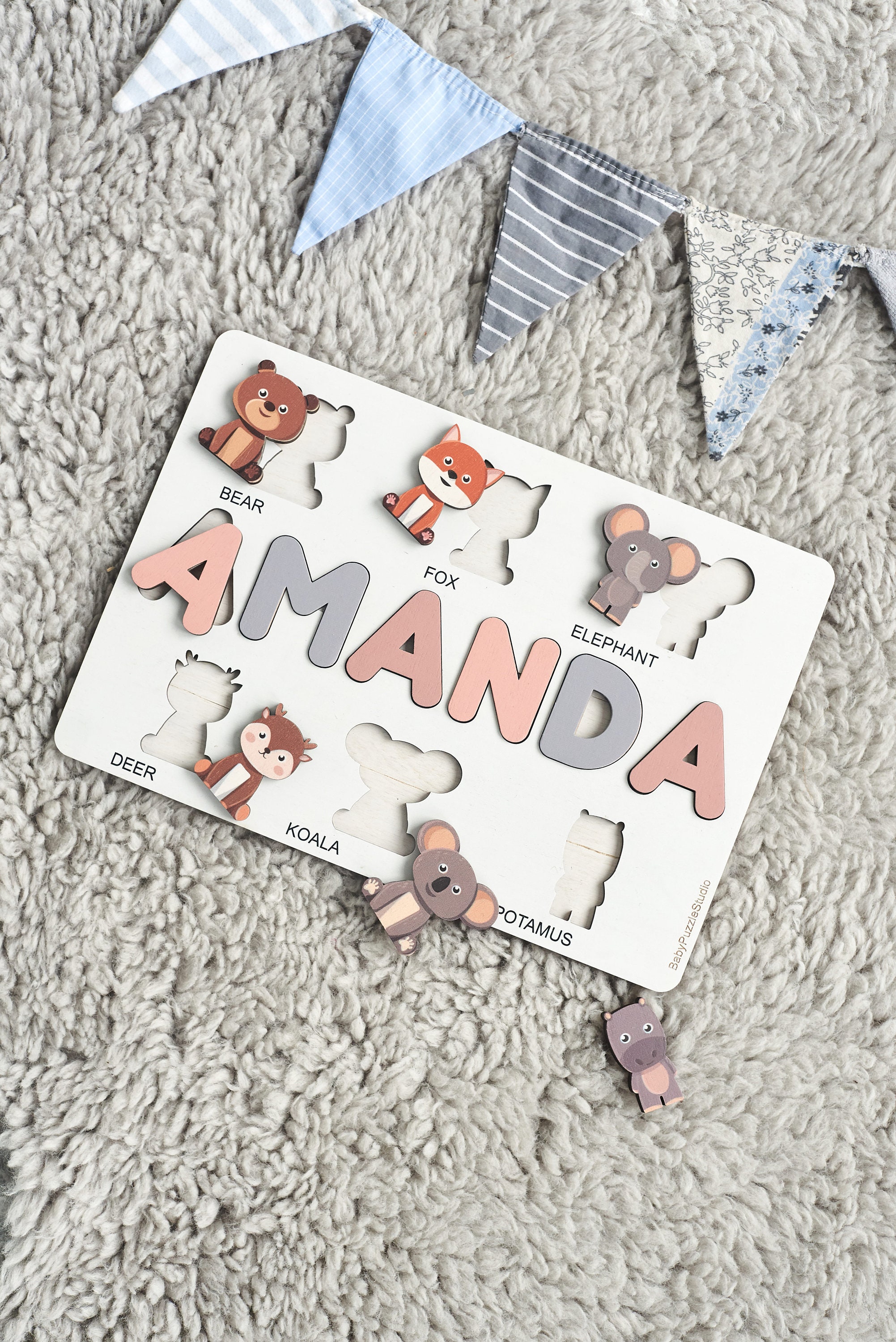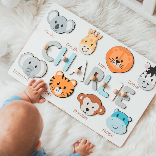 personalized name puzzle with animals