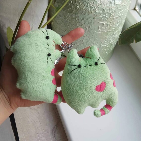 pusheen dinosaur keychain