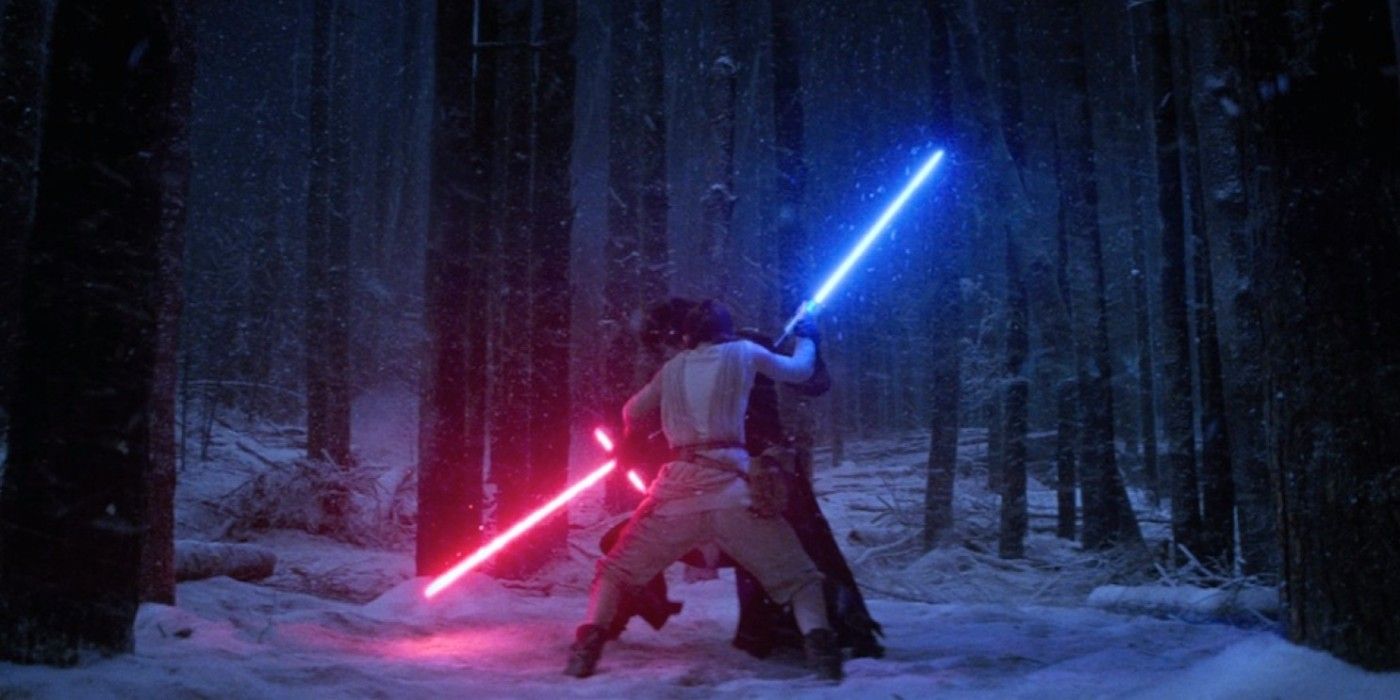 rey practicing lightsaber