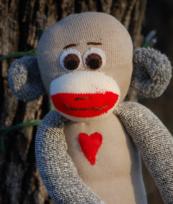 sock monkey with heart