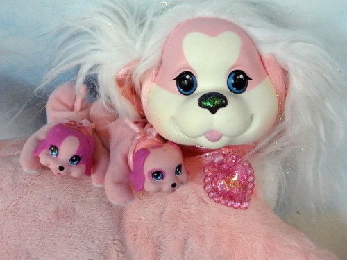 soft toy dog with puppies in tummy