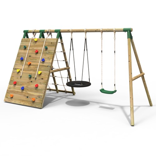 swing set with climbing wall