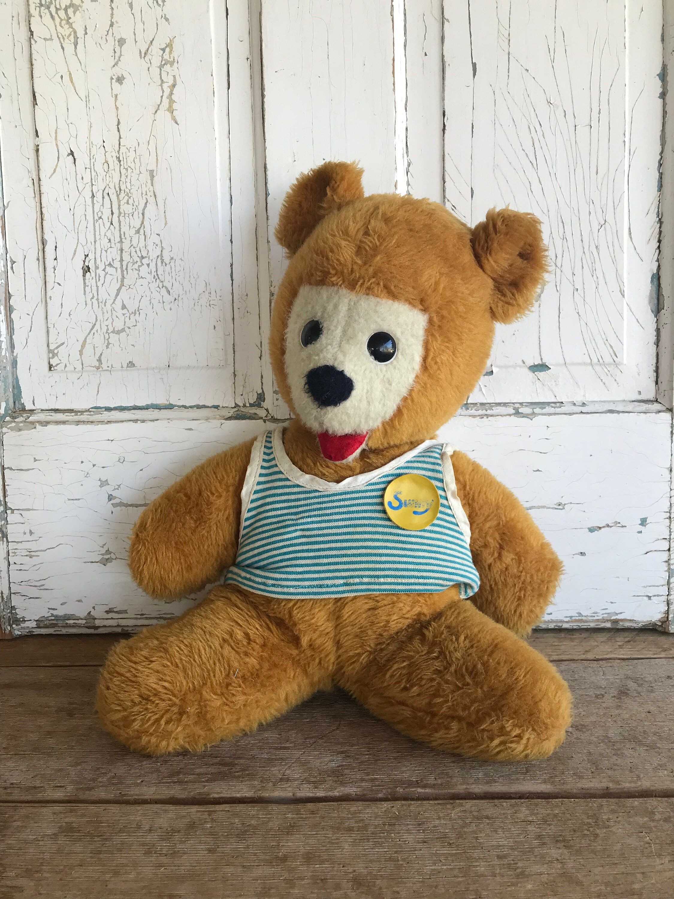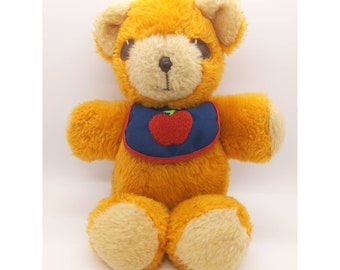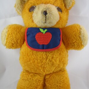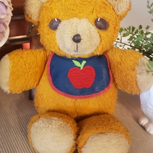 teddy bear with apple bib
