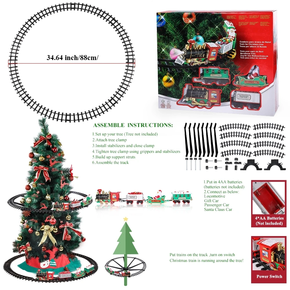 train set around christmas tree