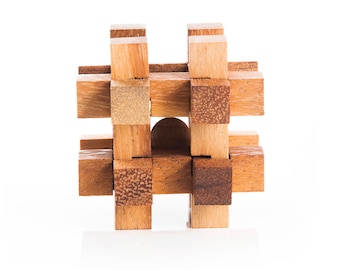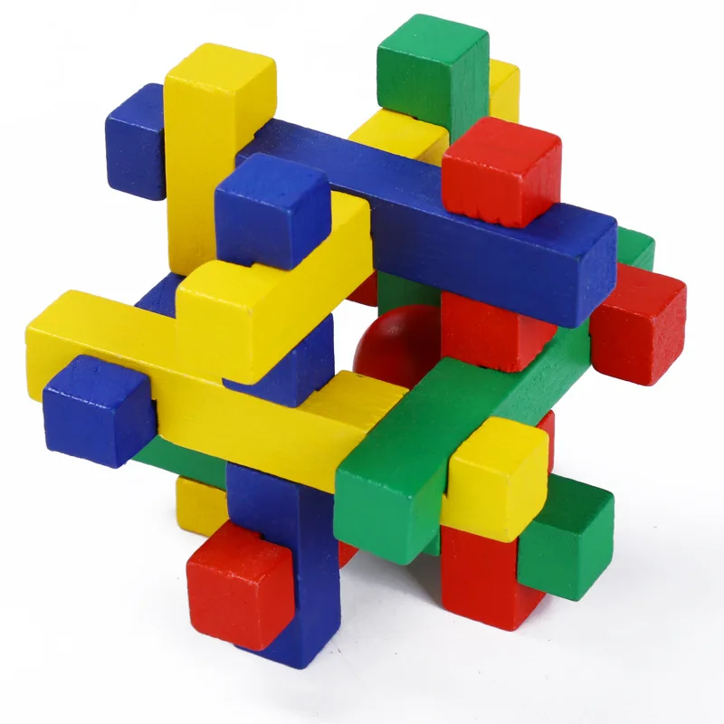 wooden puzzle with ball in the middle