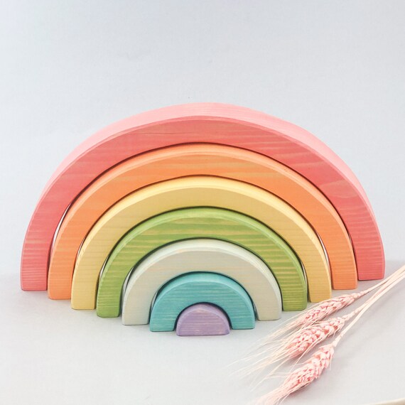 wooden rainbow stacker pastel