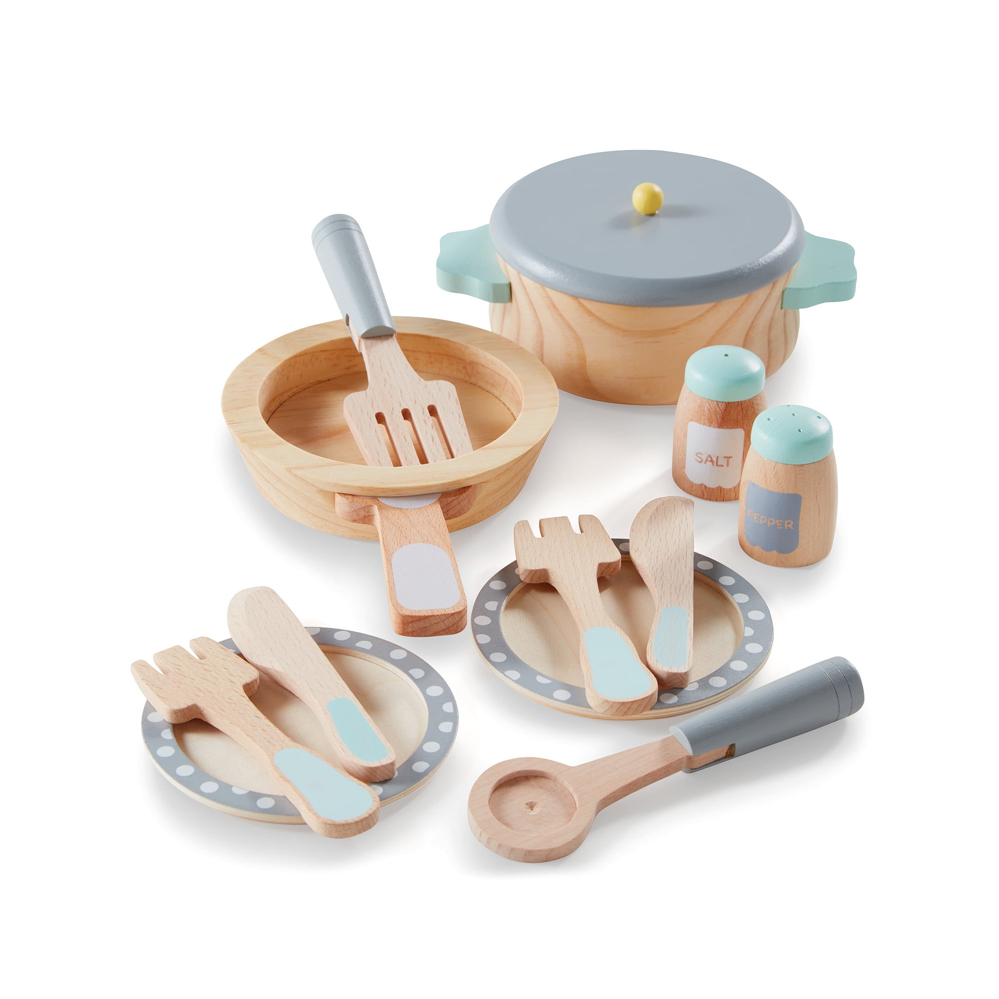 wooden toy pots and pans set