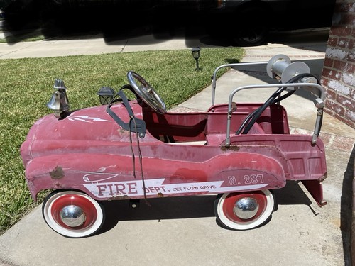 antique metal fire truck pedal car