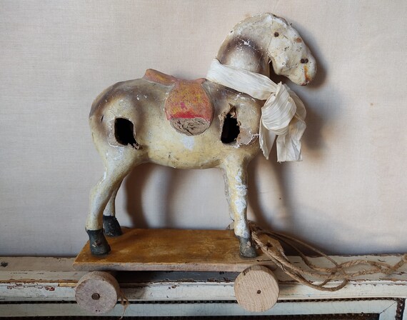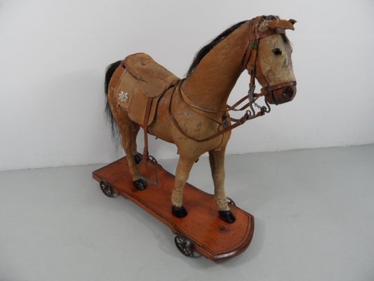 antique toy horse on wheels
