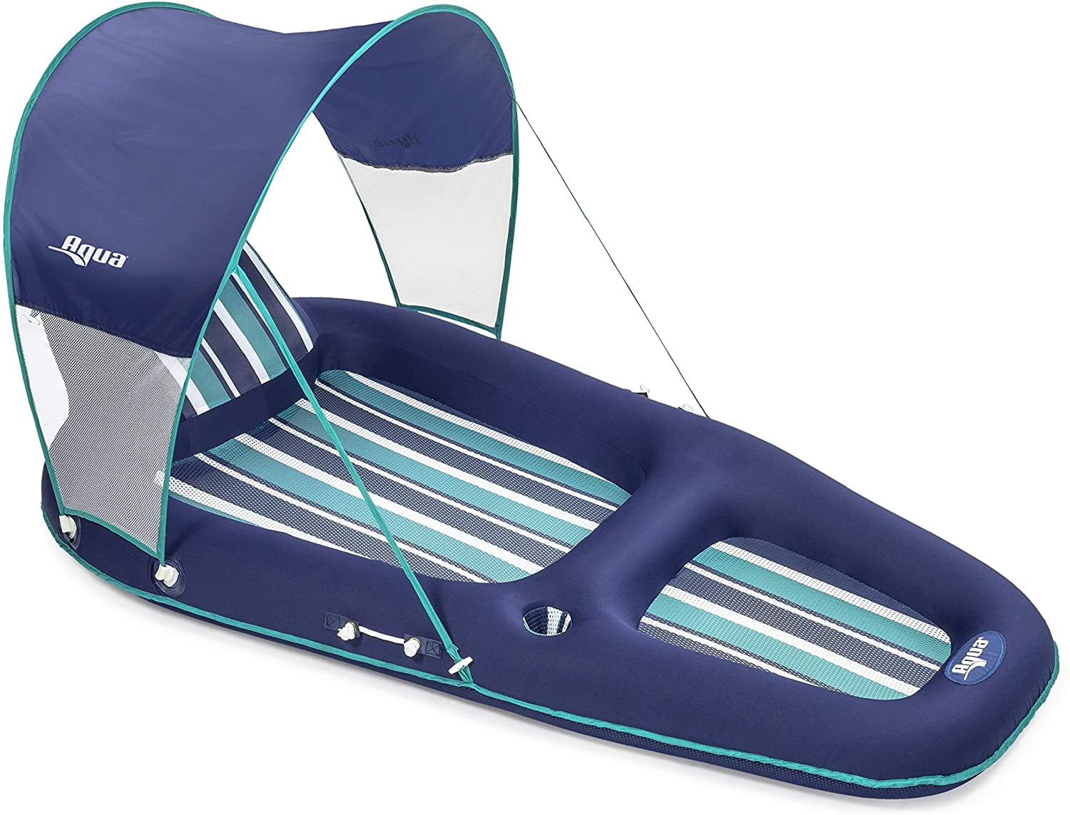 aqua oversized deluxe inflatable pool lounger float with sunshade canopy