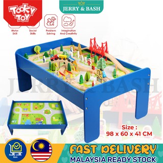 blue wooden train table