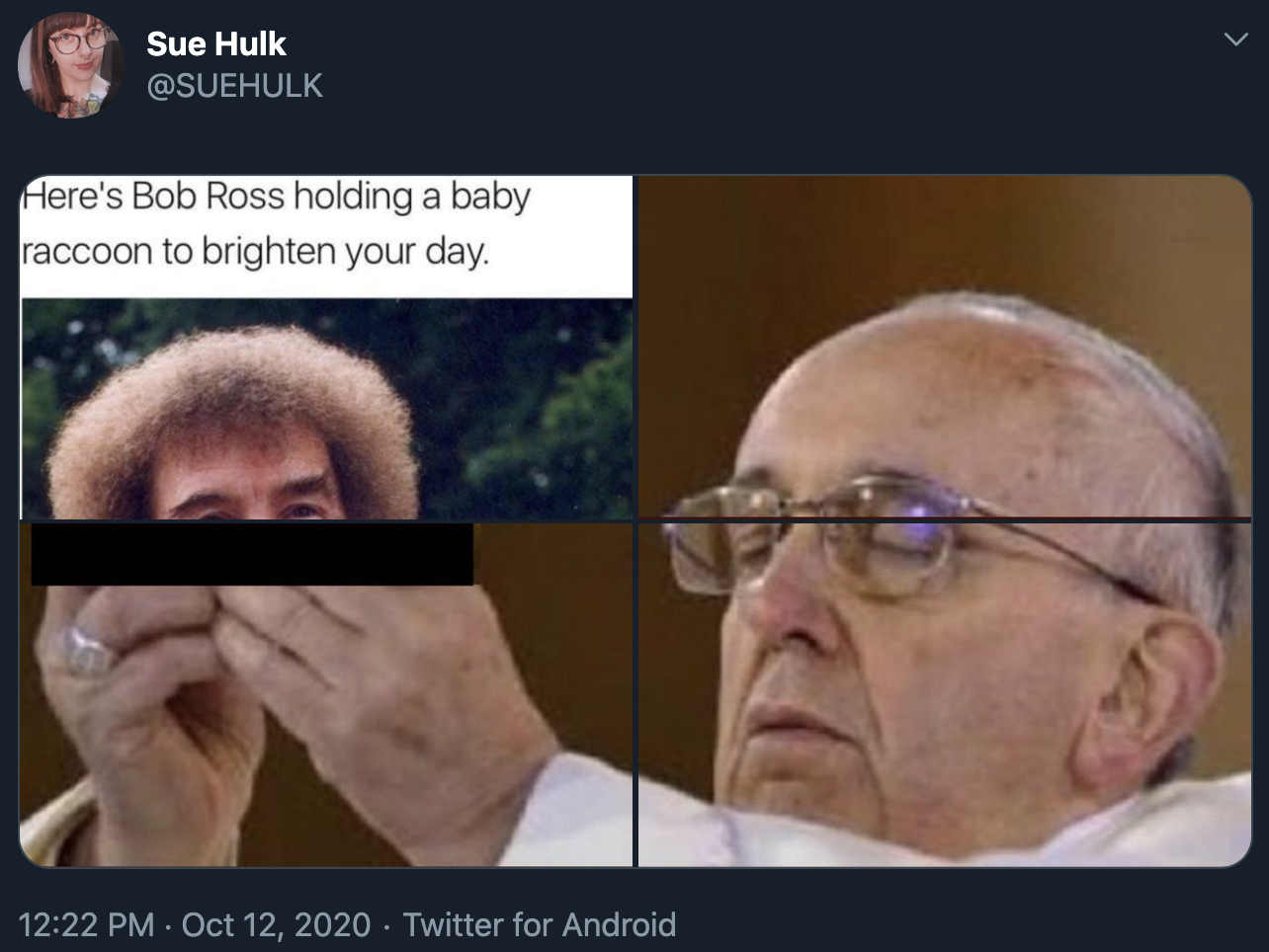 bob ross and raccoon
