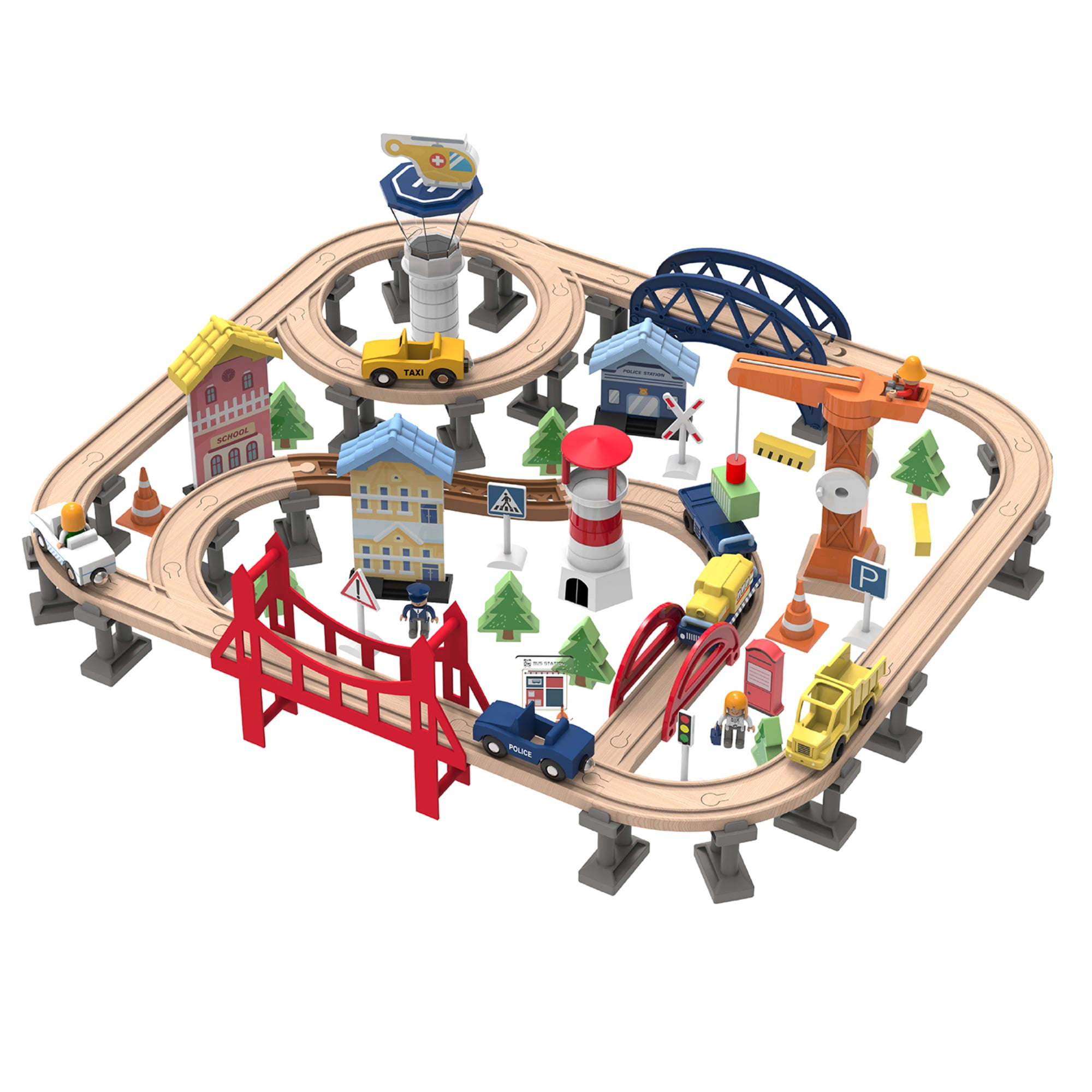 chad valley wooden table and 90 piece train set