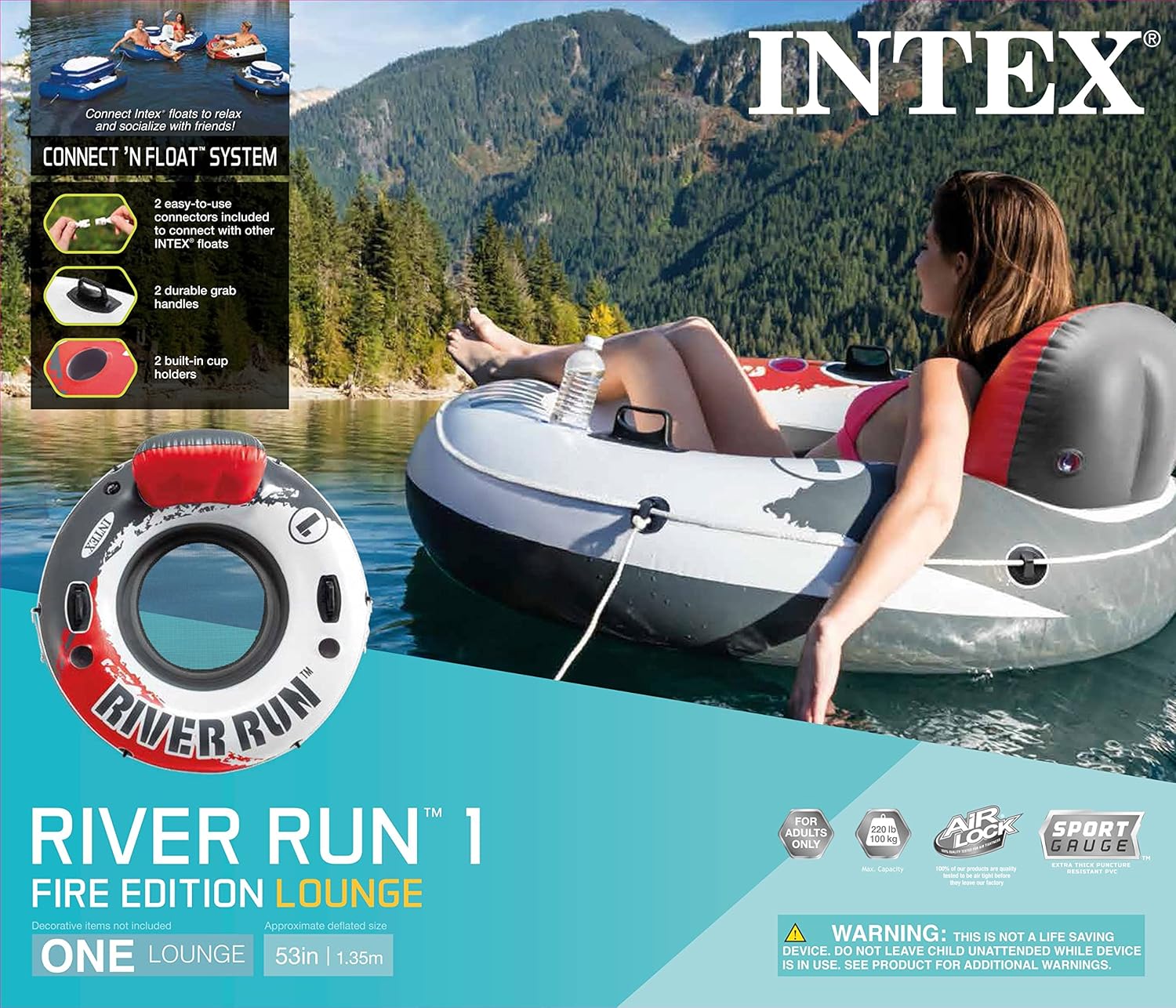 intex inflatable red river run in pool tube 53