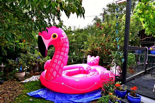 large inflatable flamingo pool