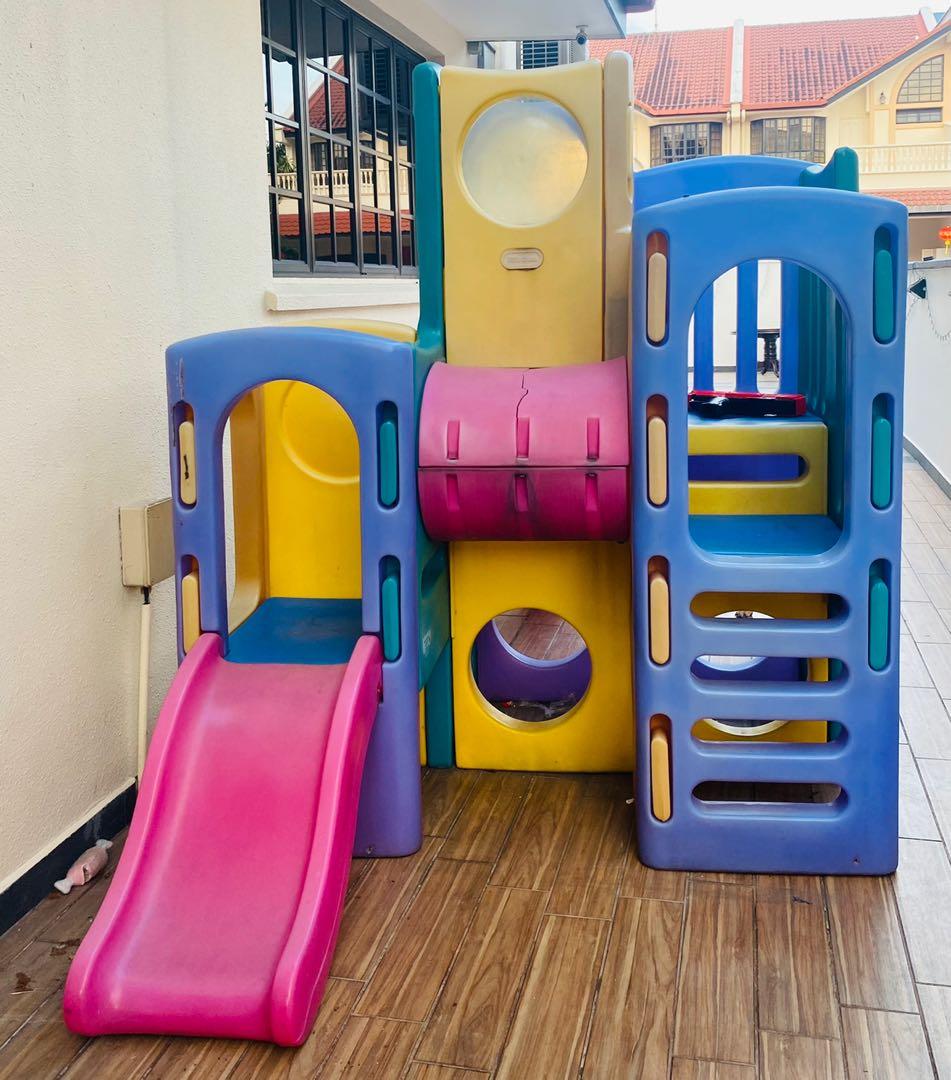 little tikes playhouse with 2 slides and tunnel