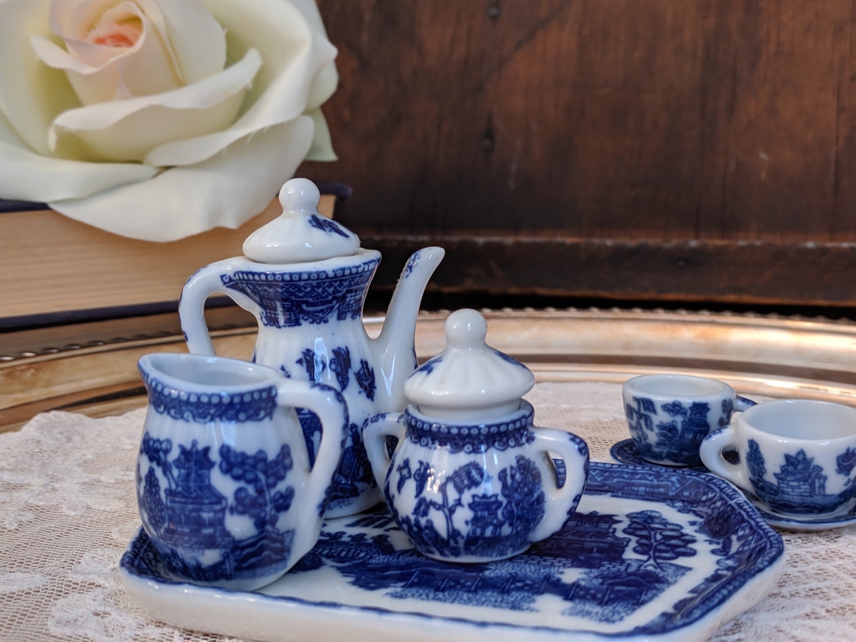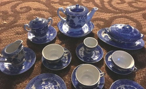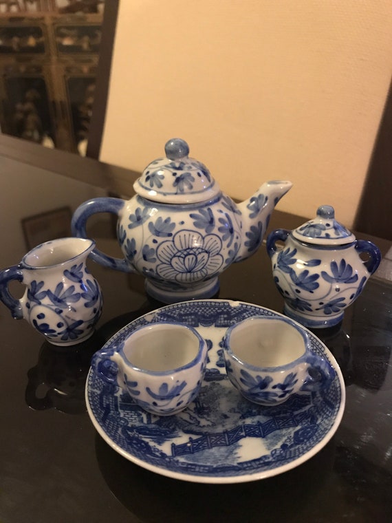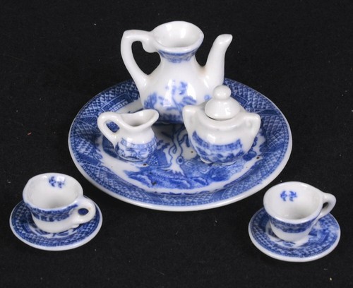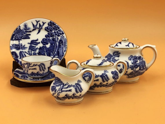 miniature blue willow tea set