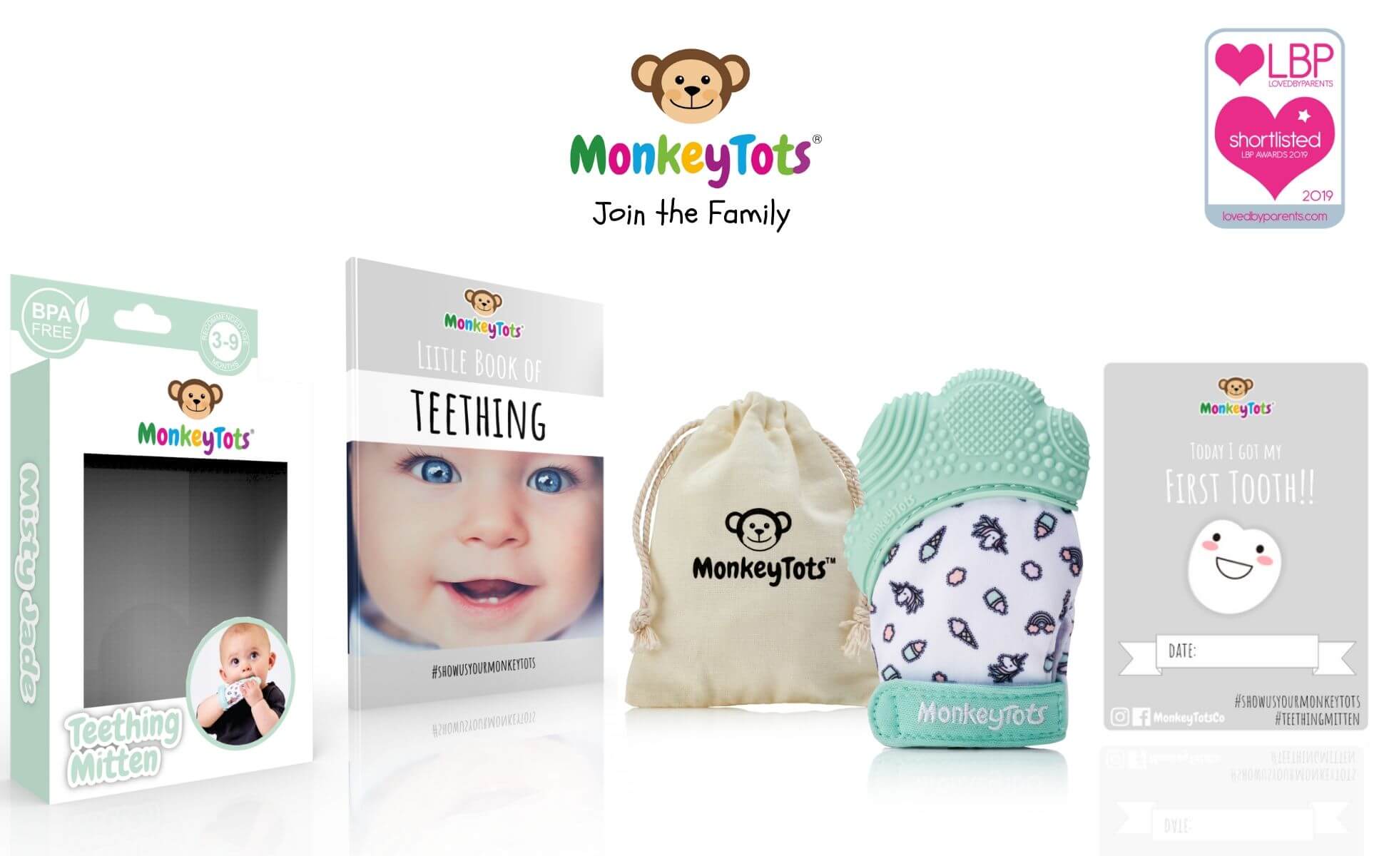monkey tots teething mitt
