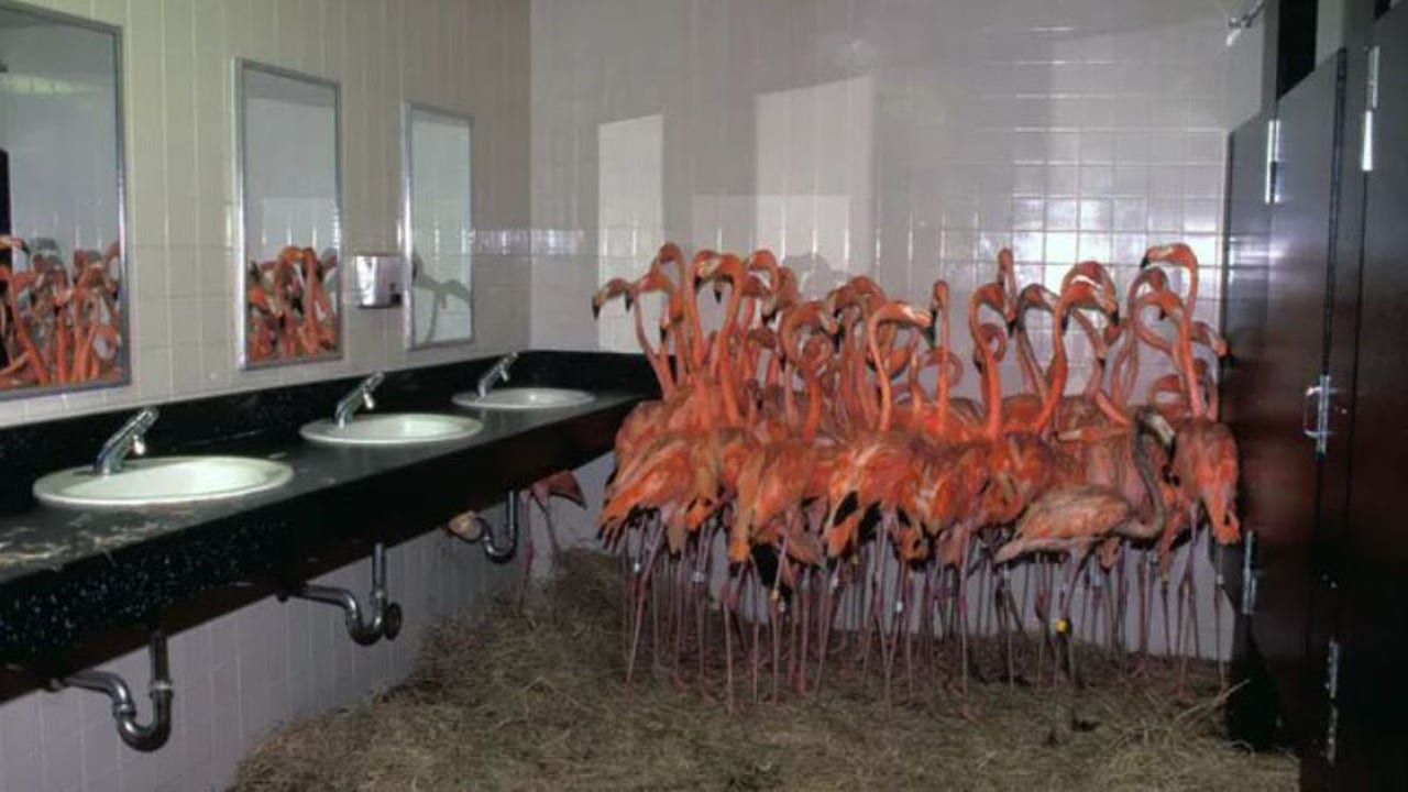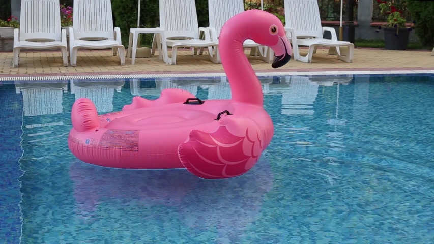 puppy floats about pool inside inflatable flamingo in adorable video