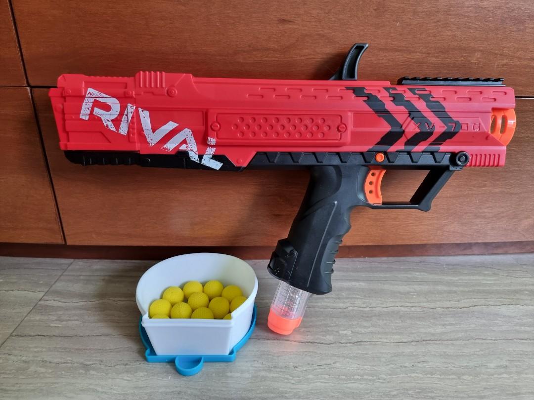 red nerf gun with yellow balls