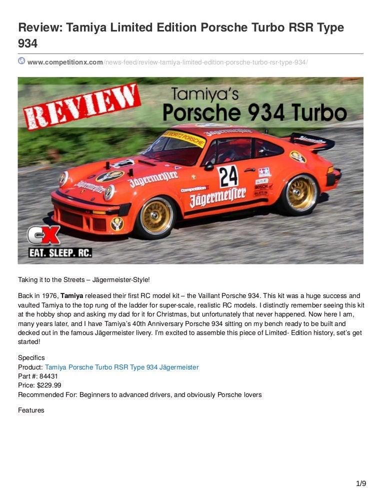 tamiya rc porsche 934 jagermeister
