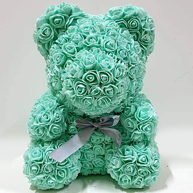 teal rose teddy bear