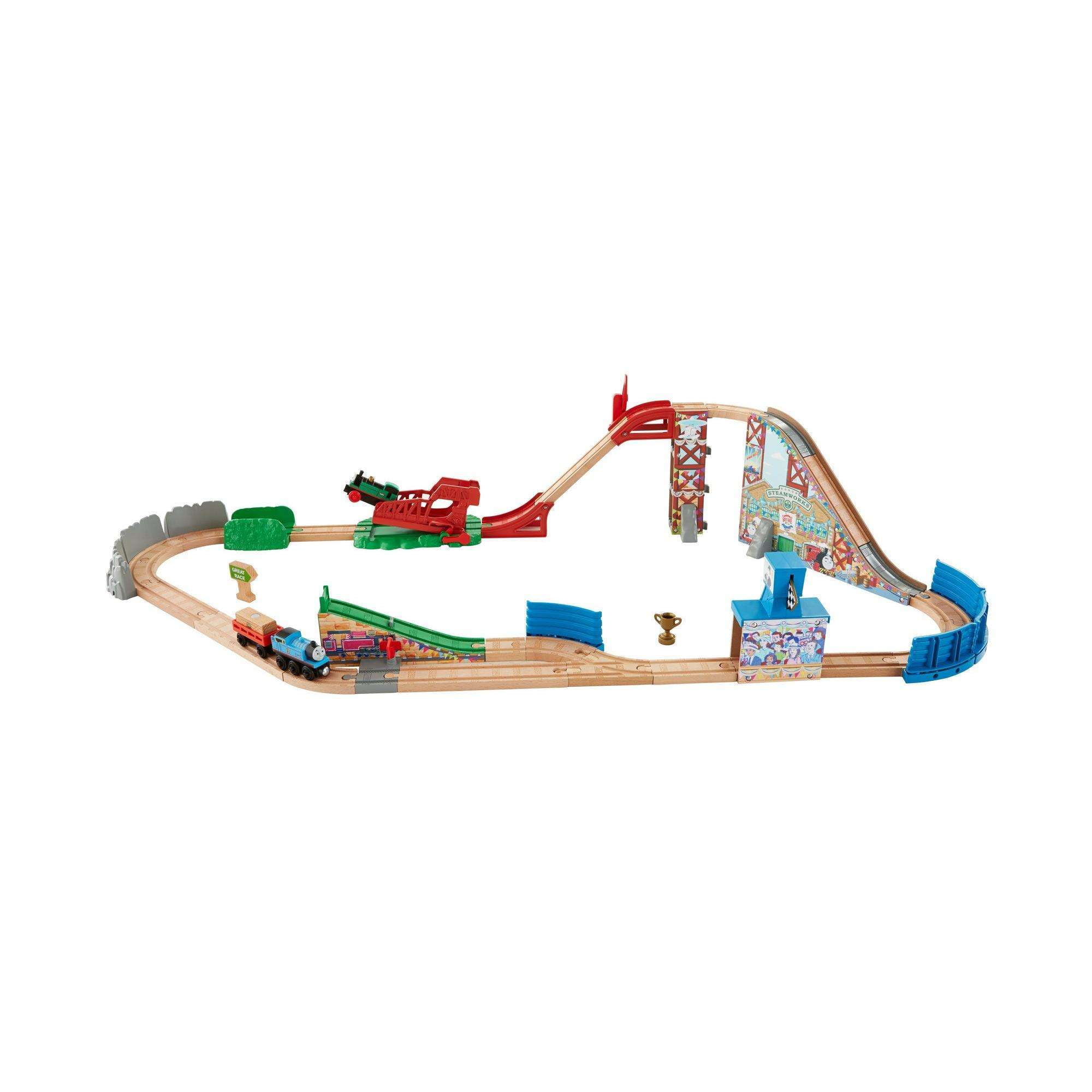 thomas wooden railway race day relay set
