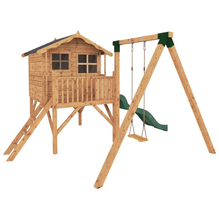 tower playhouse with slide and swing