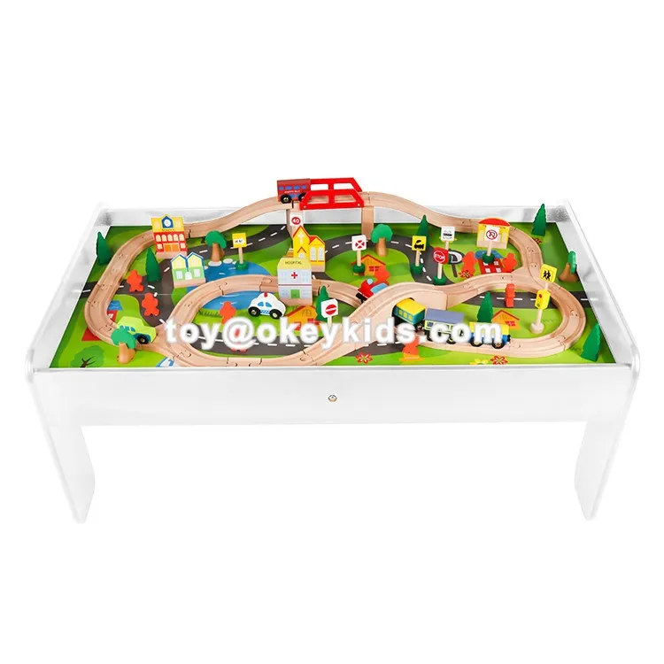 white wooden train table