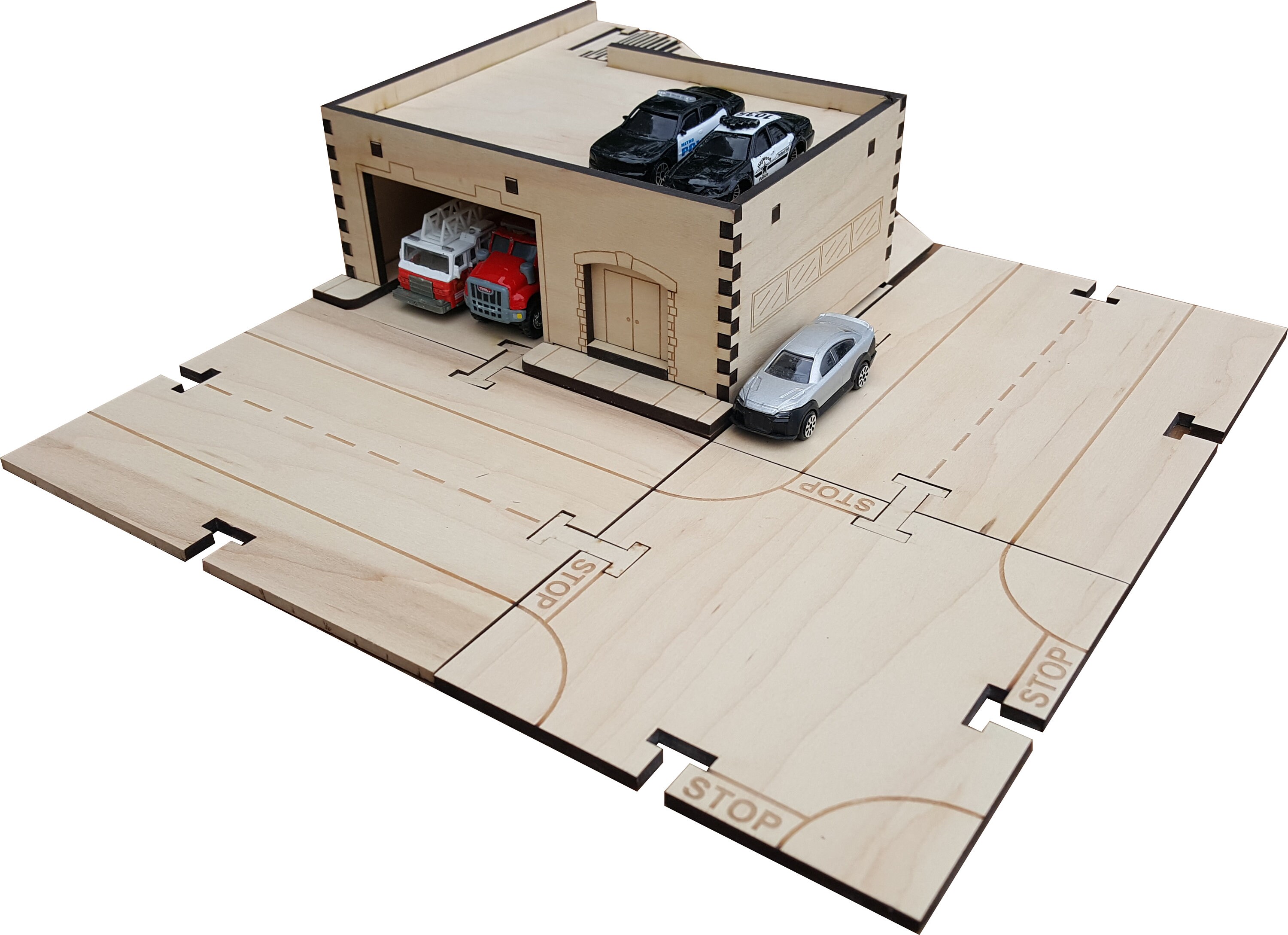 wooden fire station and police station