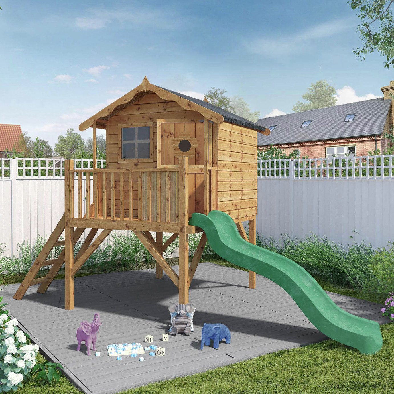 wooden playhouse with slide argos
