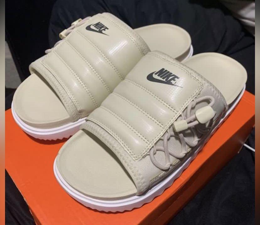 cream nike slides
