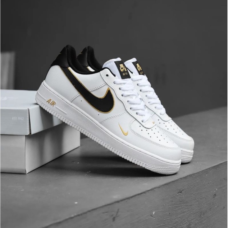 gold black and white nike shoes